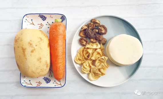 饺子皮 、莲藕、红萝卜、香菇、大豆蛋白素肉